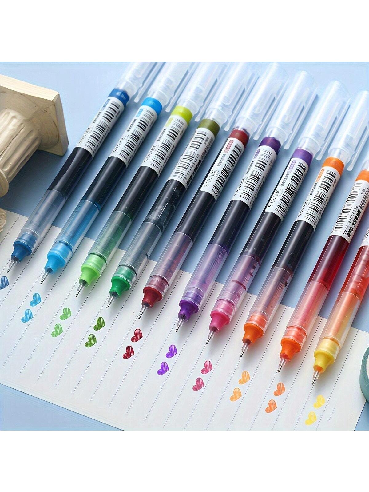 12 قلم حبر سائل متنوع الألوان، قلم كرة سريع الجفاف سعة كبيرة 0.5 مم للطلاب والمكتب والتوقيع، عودة إل